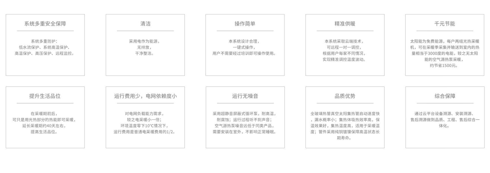 “光熱+空氣源熱泵”戶用采暖系統是利用光熱采暖機吸收太陽輻射轉換成熱能。